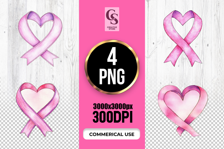 4 Pink Awareness Ribbon Clipart Sublimation PNG Files Perfect for Greeting Cards, Invitations, Junk Journal, Party Decor, Scrapbooking and many other craft projects .