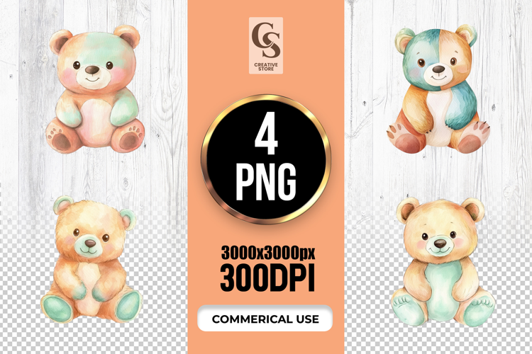 4 Cute Teddy Bear Clipart Sublimation PNG Files Perfect for Greeting Cards, Invitations, Junk Journal, Party Decor, Scrapbooking and many other craft projects .