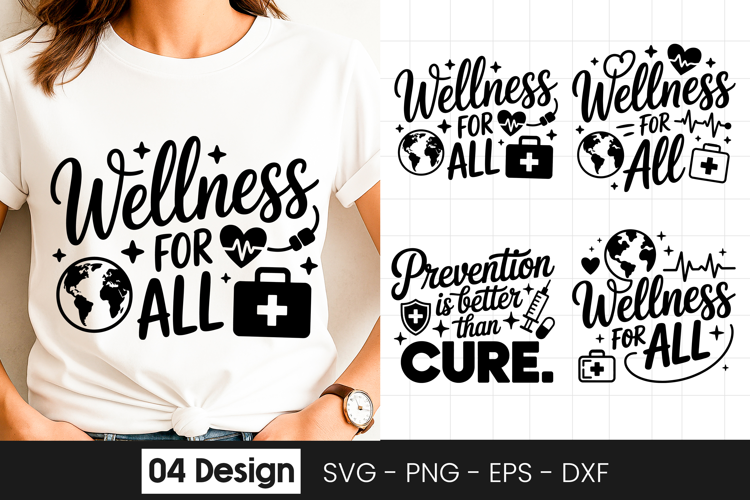Wellness For All Quote SVG PNG. Perfect for crafters, designers, and DIY lovers, this design works beautifully with cutting machines and design software. Use this inspirational quote for greeting cards, invitations, scrapbooking, junk journals, party decor, t-shirts, mugs, wall art, stickers, and many other craft projects.