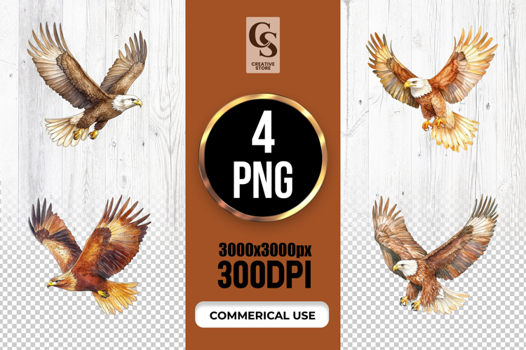 4 Flying Bald Eagle Illustration Clipart Sublimation PNG Files Perfect for Greeting Cards, Invitations, Junk Journal, Party Decor, Scrapbooking and many other craft projects .