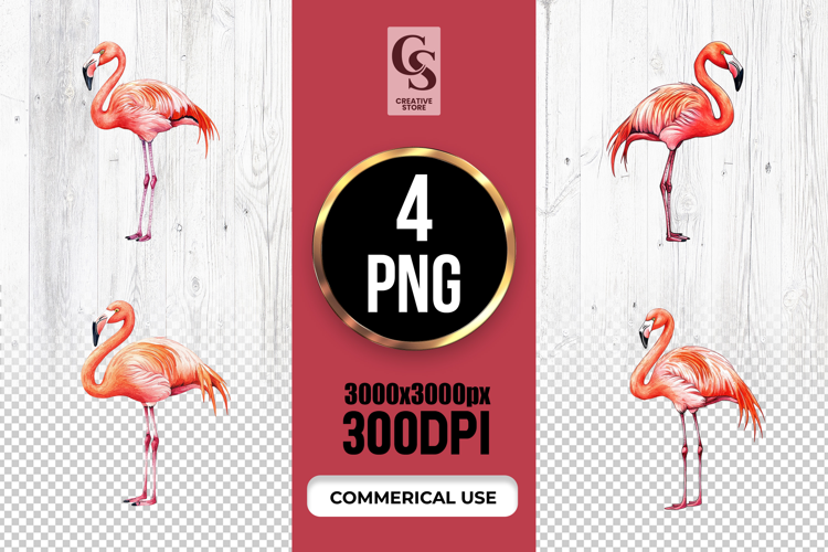 4 Pink Flamingo Bird Illustration Clipart Sublimation PNG Files Perfect for Greeting Cards, Invitations, Junk Journal, Party Decor, Scrapbooking and many other craft projects .