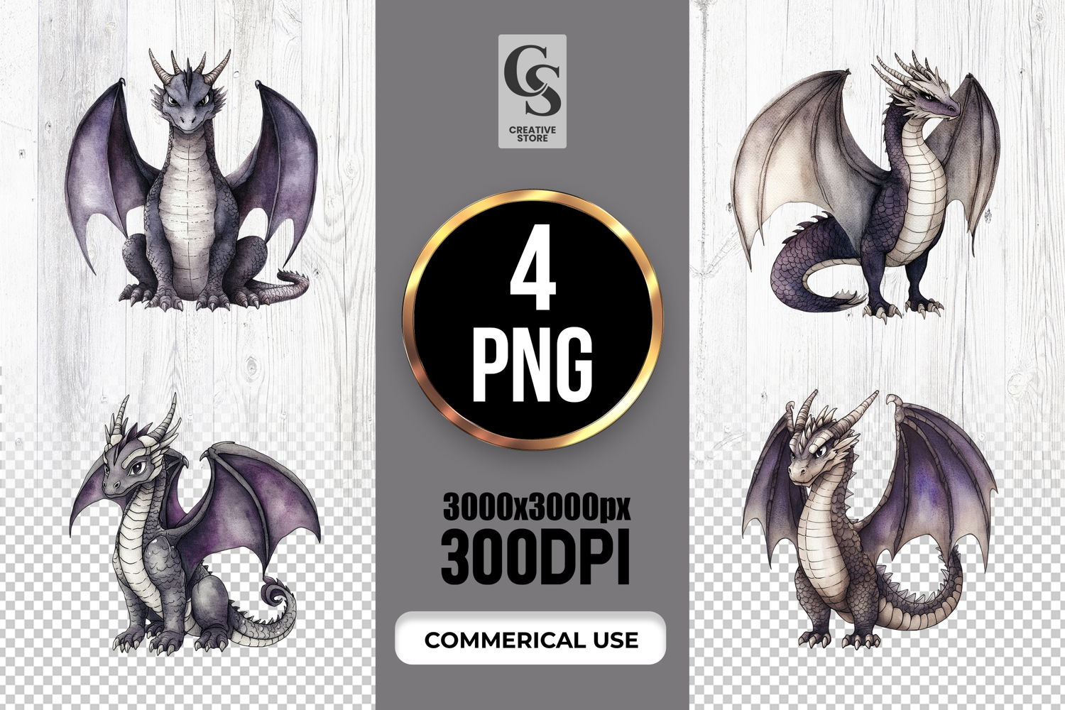 4 Cute Fantasy Dragon Illustration Clipart Sublimation PNG Files Perfect for Greeting Cards, Invitations, Junk Journal, Party Decor, Scrapbooking and many other craft projects .
