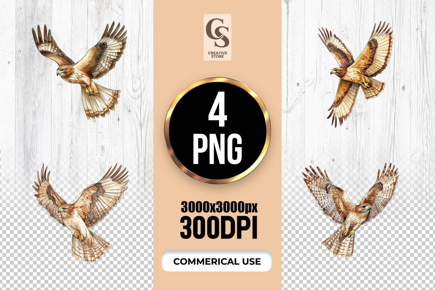 4 Flying Hawk Bird Illustration Clipart Sublimation PNG Files Perfect for Greeting Cards, Invitations, Junk Journal, Party Decor, Scrapbooking and many other craft projects .
