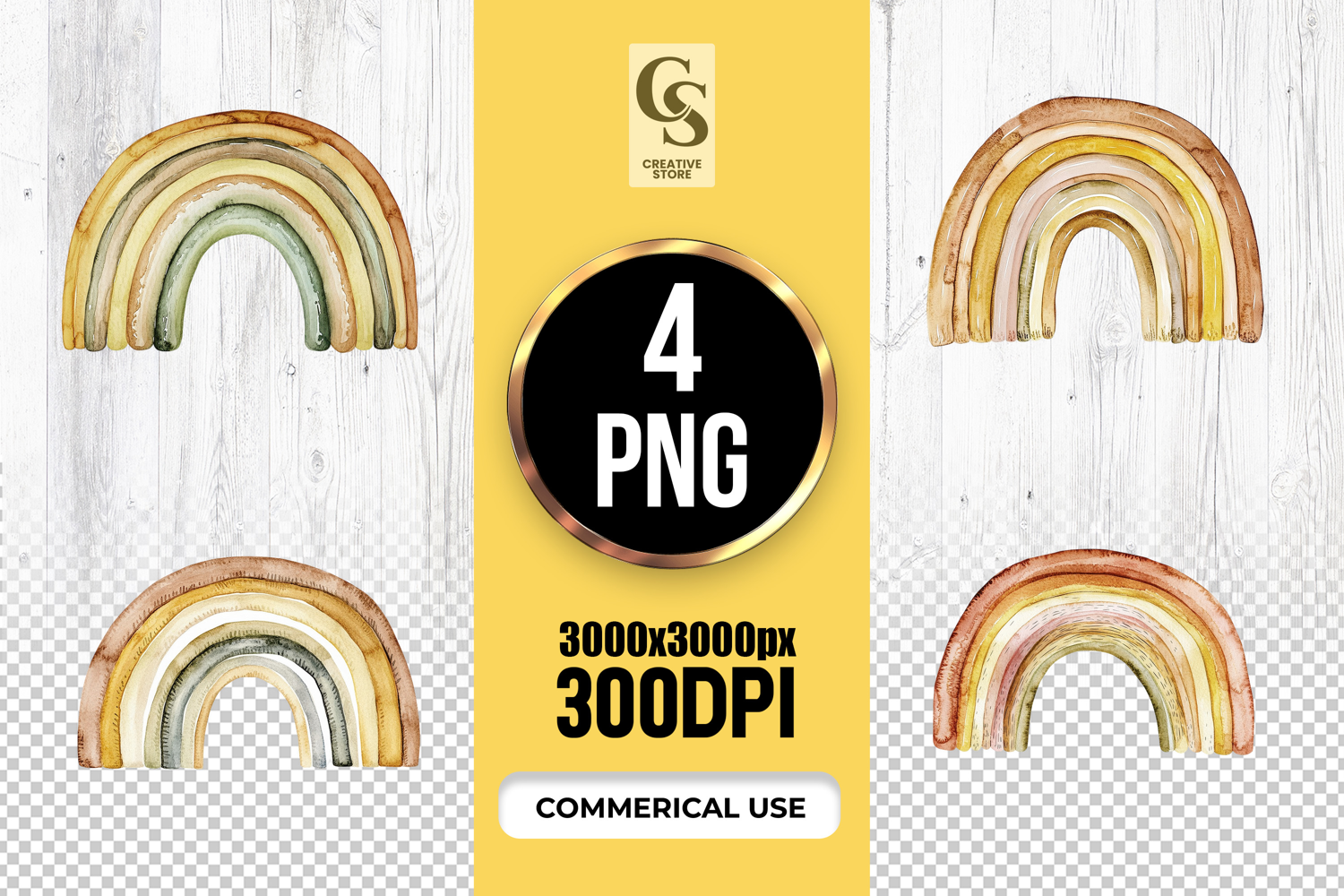 4 Boho Watercolor Rainbow Illustration Clipart Sublimation PNG Files Perfect for Greeting Cards, Invitations, Junk Journal, Party Decor, Scrapbooking and many other craft projects .