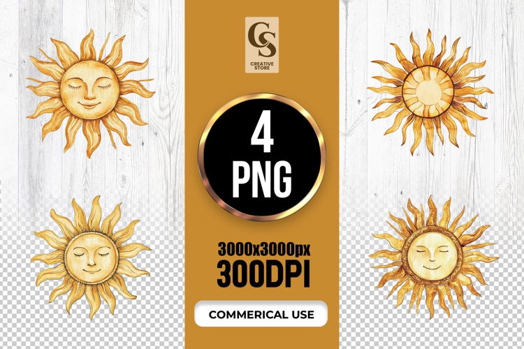 4 Vintage Boho Sun Face Illustration Clipart Sublimation PNG Files Perfect for Greeting Cards, Invitations, Junk Journal, Party Decor, Scrapbooking and many other craft projects .