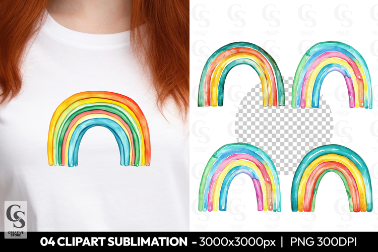 4 Vibrant Rainbow Watercolor Bright Clipart Sublimation PNG Files Perfect for Greeting Cards, Invitations, Junk Journal, Party Decor, Scrapbooking and many other craft projects .