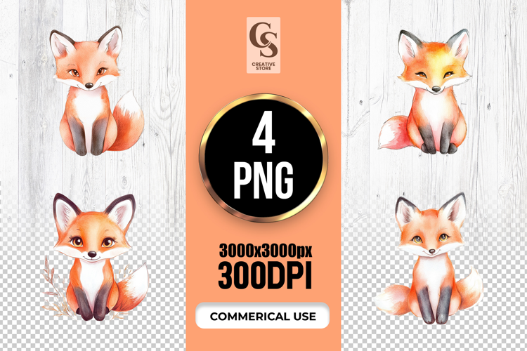 4 Cute Watercolor Fox Clipart Sublimation PNG Files Perfect for Greeting Cards, Invitations, Junk Journal, Party Decor, Scrapbooking and many other craft projects