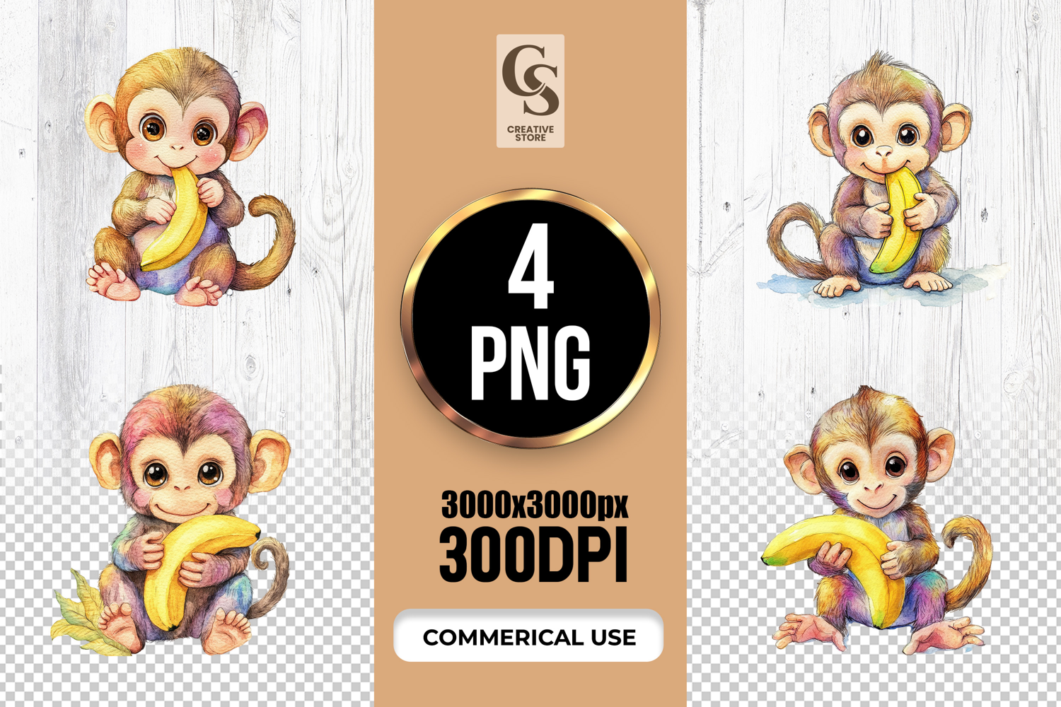 4 Cute Monkey Banana Clipart Sublimation PNG Files Perfect for Greeting Cards, Invitations, Junk Journal, Party Decor, Scrapbooking and many other craft projects