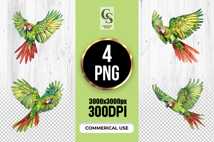 4 Colorful Parrot Bird Watercolor Clipart Sublimation PNG Files Perfect for Greeting Cards, Invitations, Junk Journal, Party Decor, Scrapbooking and many other craft projects