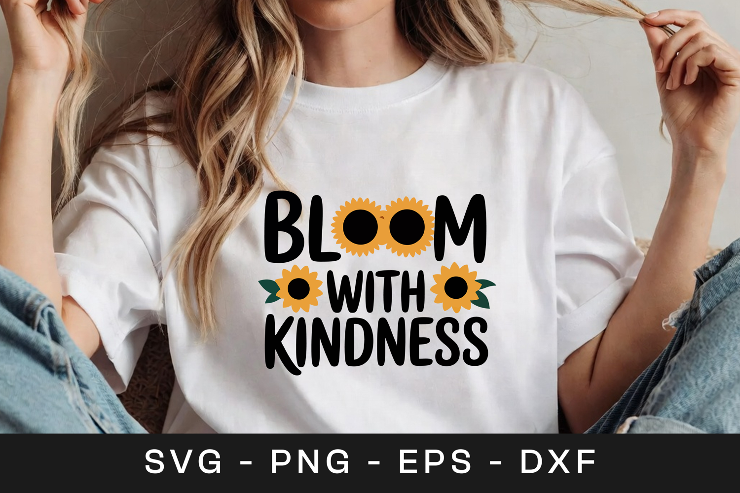 Bloom with Kindness Sunflower SVG PNG Perfect for crafters, designers, and DIY lovers, this design works beautifully with cutting machines and design software. Use this inspirational quote for greeting cards, invitations, scrapbooking, junk journals, party decor, t-shirts, mugs, wall art, stickers, and many other craft projects.