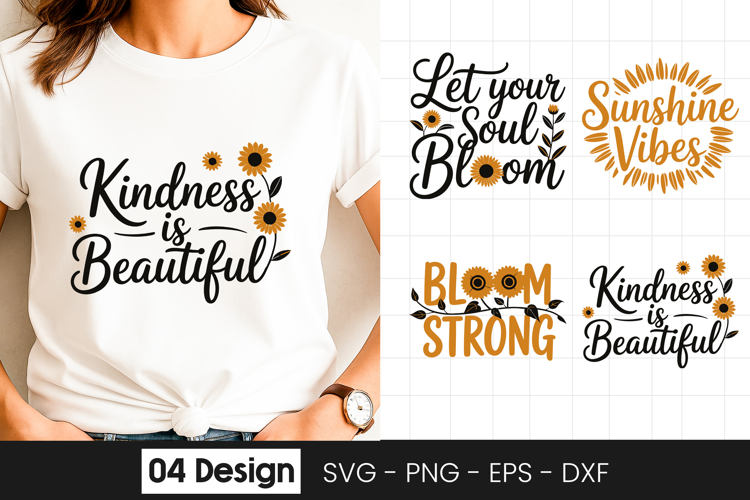 Bloom with Kindness Floral SVG PNG Perfect for crafters, designers, and DIY lovers, this design works beautifully with cutting machines and design software. Use this inspirational quote for greeting cards, invitations, scrapbooking, junk journals, party decor, t-shirts, mugs, wall art, stickers, and many other craft projects.