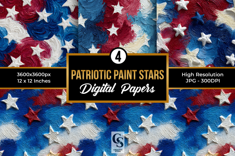 Patriotic Impasto Painted Stars Seamless Patterns