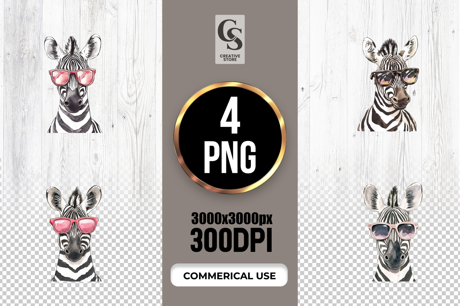 4 Cute Zebra Sunglasses Clipart PNG Files Perfect for Greeting Cards, Invitations, Junk Journal, Party Decor, Scrapbooking and many other craft projects