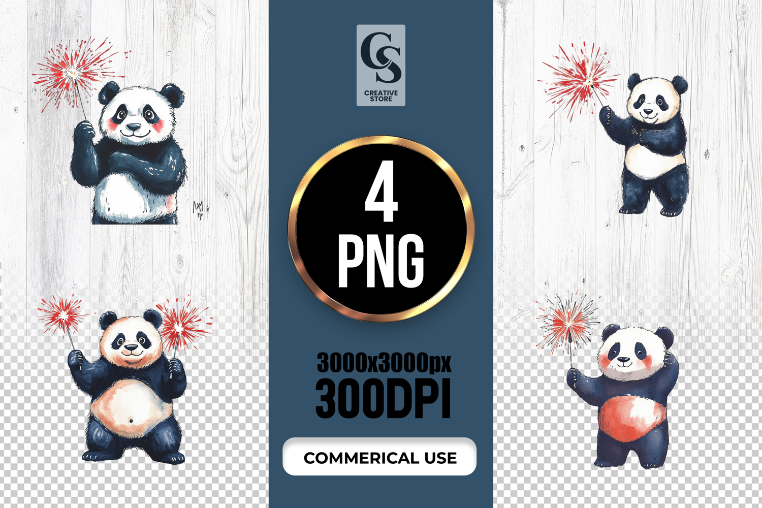 4 Patriotic Panda Clipart PNG Files Perfect for Greeting Cards, Invitations, Junk Journal, Party Decor, Scrapbooking and many other craft projects