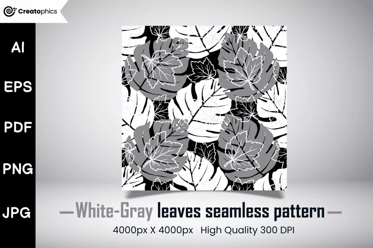 Elevate your creative projects with our White Gray Leaves Seamless Pattern Design. This elegant digital paper features a sophisticated blend of white and gray tones, showcasing delicate leaf motifs that seamlessly repeat for a flawless finish. Perfect for backgrounds, scrapbooking, packaging, and more, this versatile pattern adds a touch of nature-inspired elegance to any design. Ideal for both digital and print use, it ensures high-quality resolution and effortless integration into your artistic endeavors. Its infinite repeatability ensures a smooth, continuous pattern without visible seams, providing a professional and polished look to all your designs.