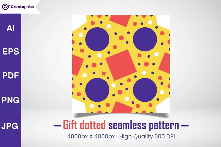 Infuse your design projects with the joy of celebration using our gift dotted seamless pattern. This charming design features playful dots arranged in a seamless pattern, ideal for adding a festive touch to your creative work. Perfect for gift wrap, party decorations, digital artwork, and more, this pattern brings a delightful and whimsical element to any project, making every occasion feel special.
