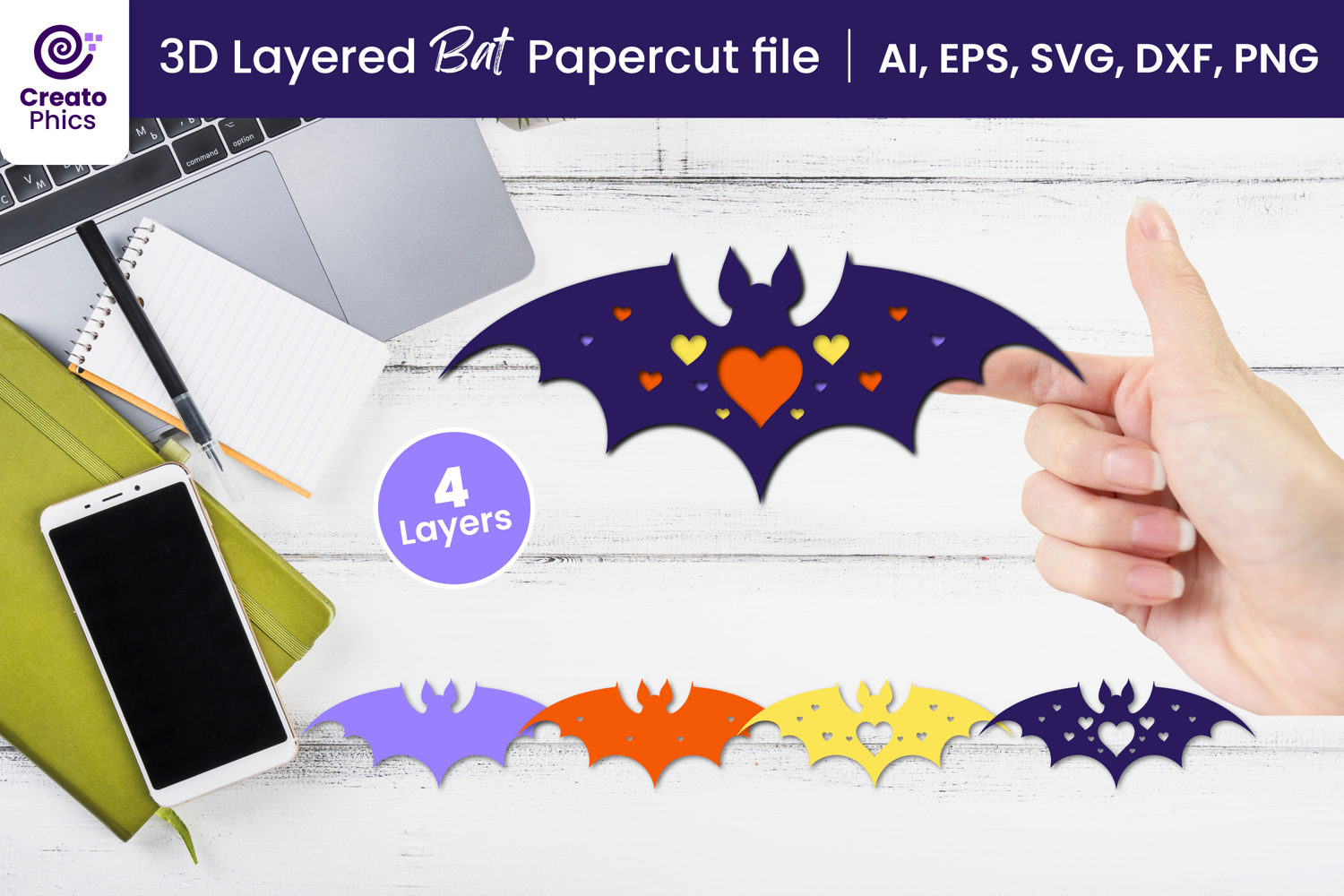 Whether you’re a DIY enthusiast or a professional crafter, this decorative 3D bat cutting file is designed to bring a spooky and decorative colorful and creative touch to your projects.