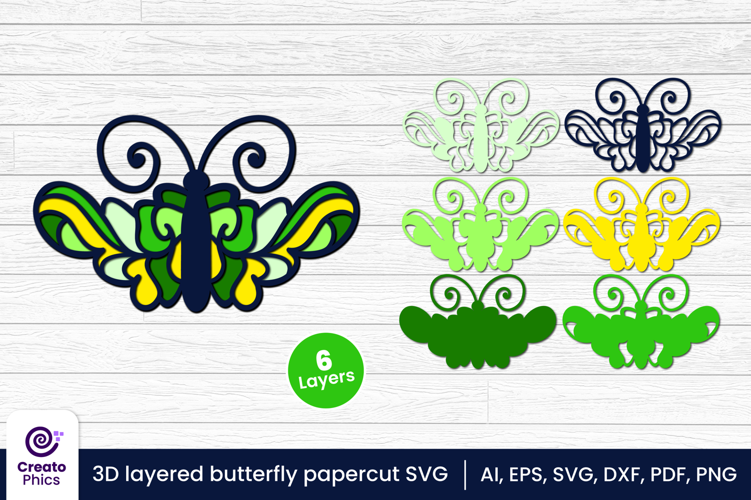 Create a beautiful sense of depth with this 3D layered butterfly papercut design, crafted to bring elegance and movement to your projects. This layered SVG is perfect for home décor, wall art, nursery decorations, gifts, and creative craft projects. Designed specifically for layered papercutting, it delivers a true 3D dimensional effect with graceful detail and eye-catching depth.