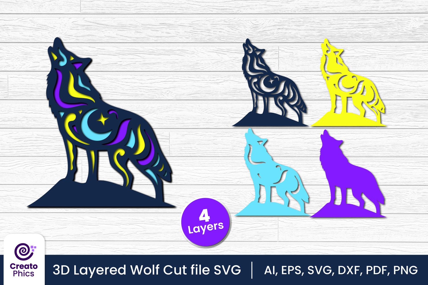 Decorative Animal Svg Laser Cutting Paper Cutting Wolf Svg Wolf Cut File Papercut File Multi Layer Cut File 3d Layered Wolf Animal Layered Paper Cutting