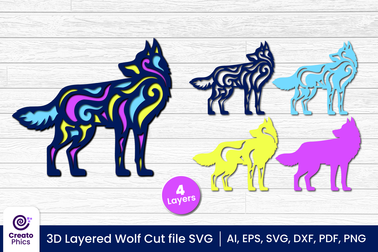 Add bold depth and artistic detail to your projects with this 3D layered decorative wolf cut file SVG. Featuring a beautifully crafted multi-layer design, this eye-catching animal papercut is perfect for shadow boxes, wall art, home decor, and creative displays. Each layer is designed for precise cutting and easy assembly, making it ideal for Cricut, Silhouette, and other cutting machines. The high-quality vector format ensures clean cuts and a professional finish for all your DIY and craft projects.