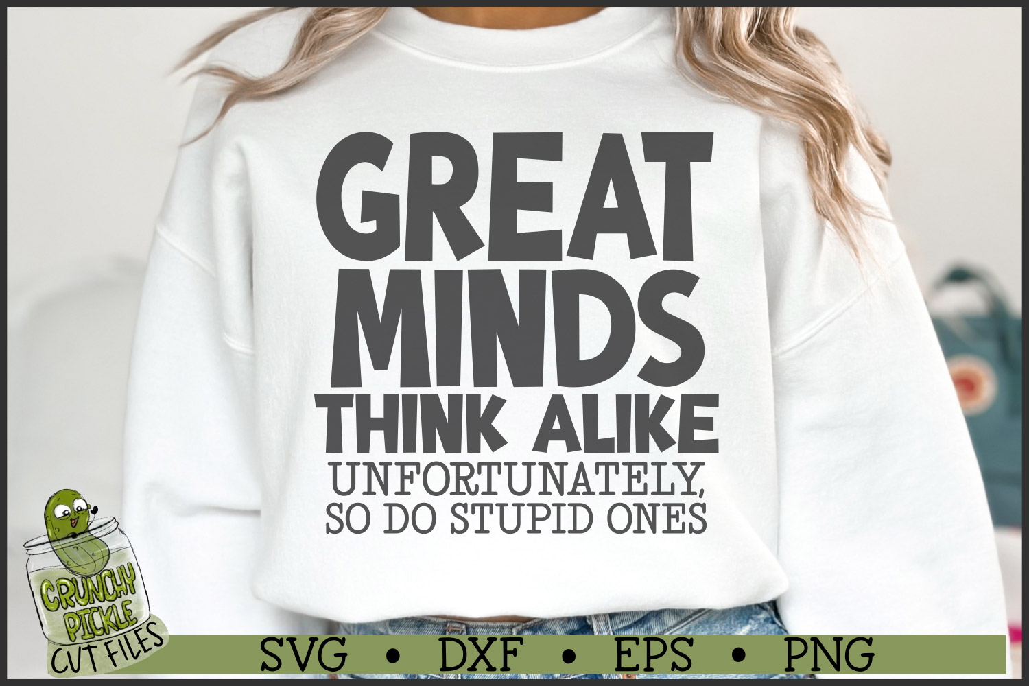 Great Minds Think Alike svg cutting file. Use this funny design with your Cricut or Silhouette Cameo to make t-shirts, tote bags, signs, vinyl decals and more. Includes a 12 inch, 300 dpi PNG file with a transparent background that can be printed and sized down if needed.
