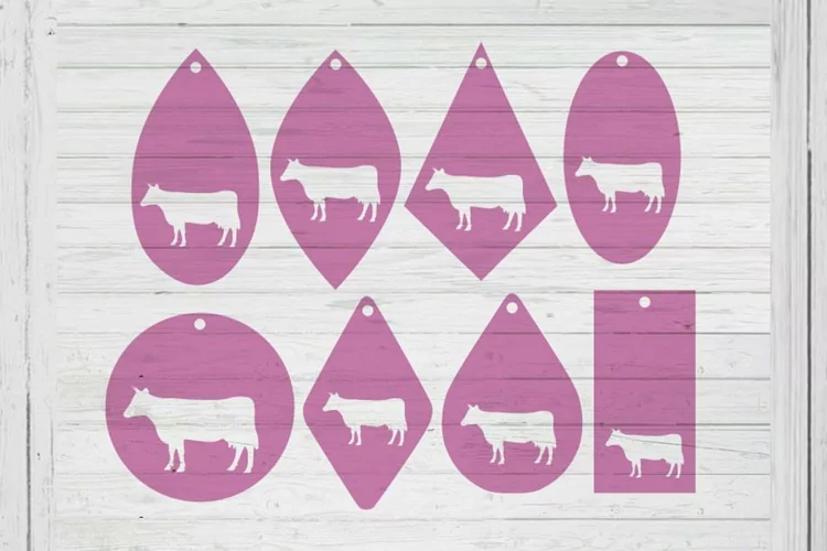 Cow Earrings template svg dxf png ai files