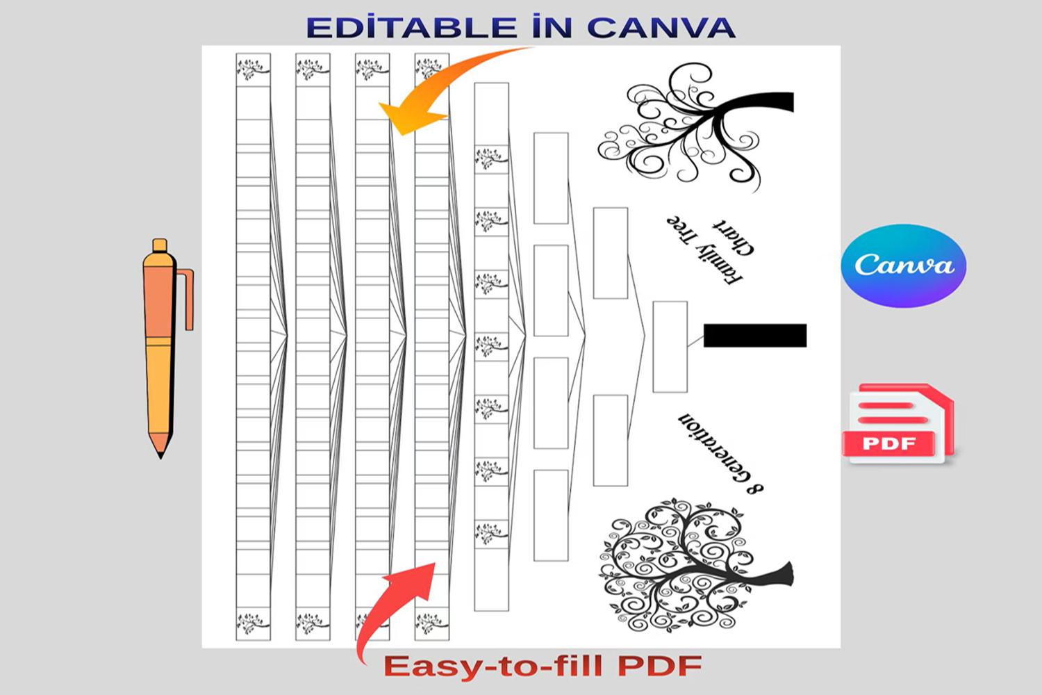 Similar Design Products to Printable 8 Generation Family Tree Chart template