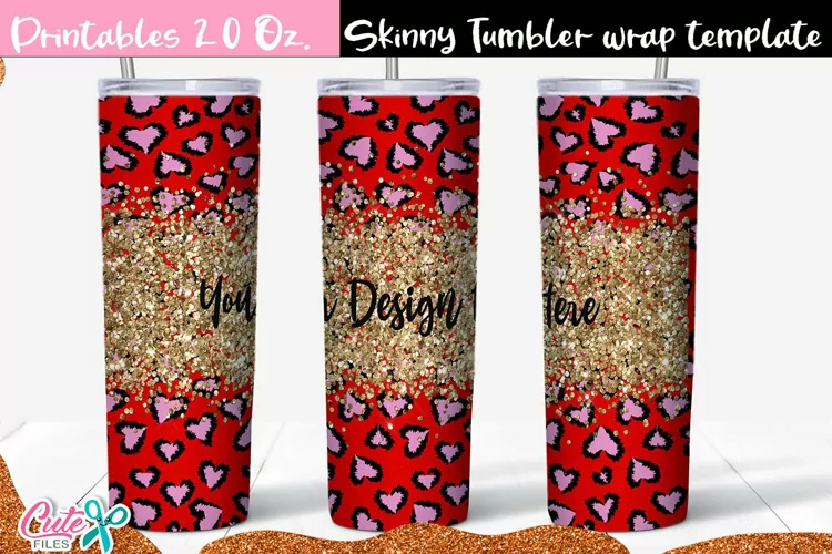 Red heart leopard Valentines day 20 Oz. Skinny Tumbler wrap