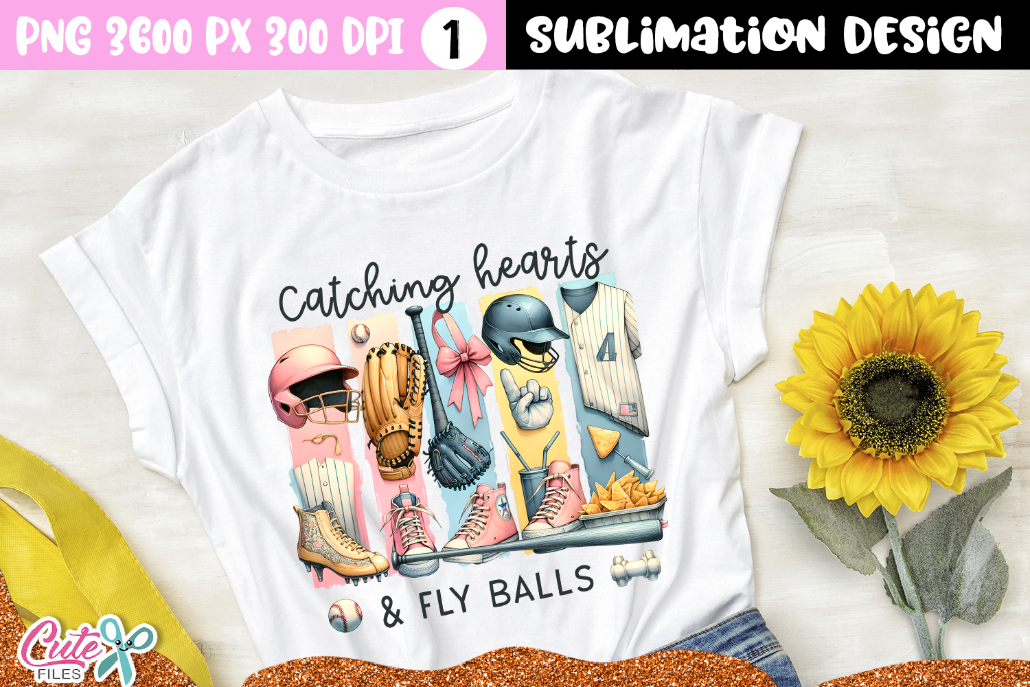 Catching hearts and fly balls Sublimation Design