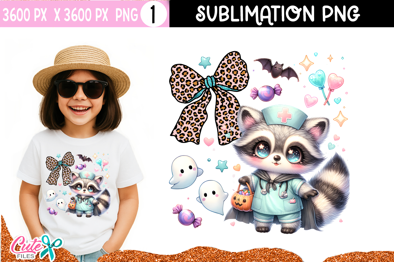 Similar Design Products to Halloween nurse coquette Raccoon Sublimation Design PNG