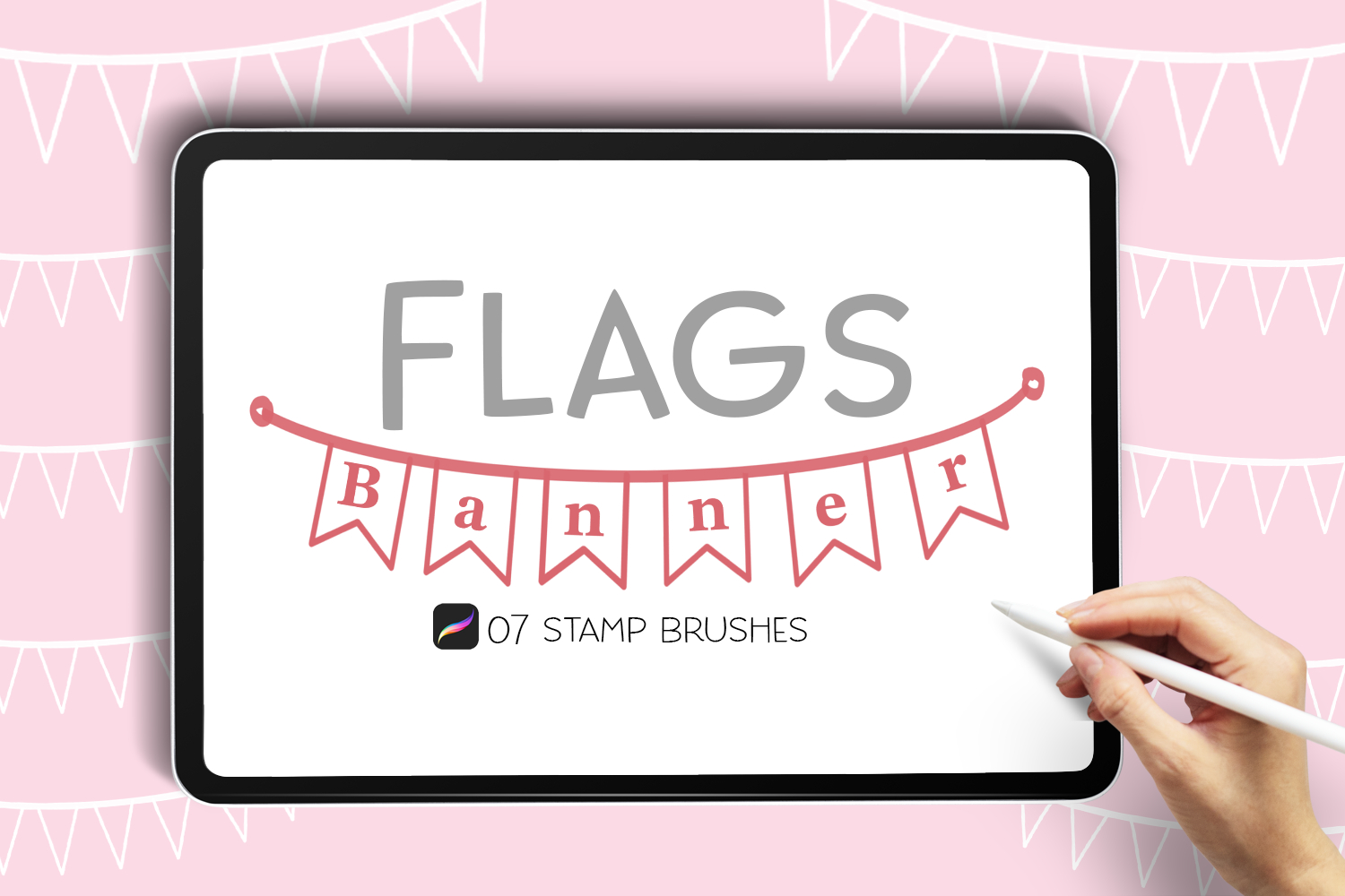 Decorate your digital creations with this Flag Banner Stamp Brush Set for Procreate!