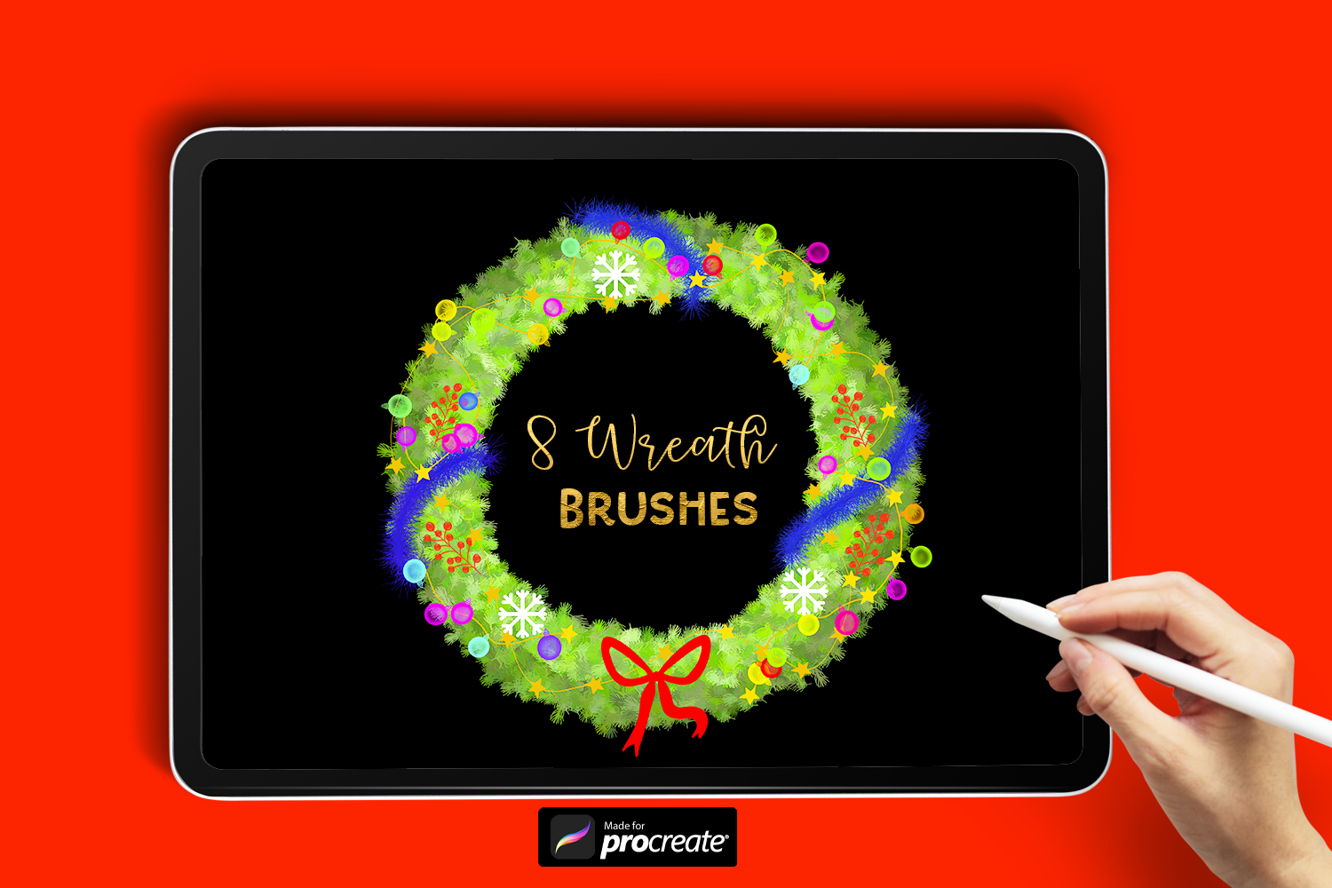 Celebrate the season with the Christmas Wreath Brush Set, a festive collection of 8 unique Procreate brushes designed to help you create beautiful Christmas wreaths, garlands, and decorations in just minutes!