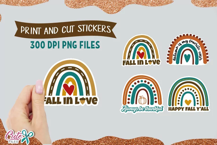 I have designed some beautiful rainbows for autumn and I have prepared them so that you can print and cut some fun stickers with rainbows in autumn tones with pumpkins and hearts are 4 designs that are stored separately with a white border and also 1 sheet with the 4 designs that you can print all together.