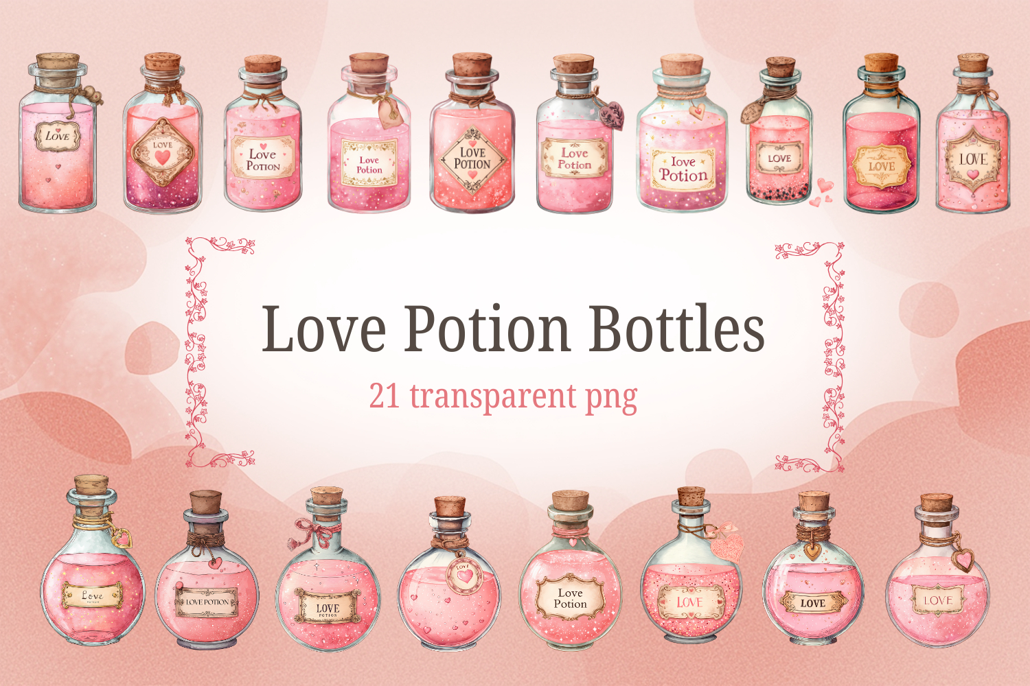 Instant download – simply add these enchanting love potion bottles to your creative toolbox and start designing right away 💕✨