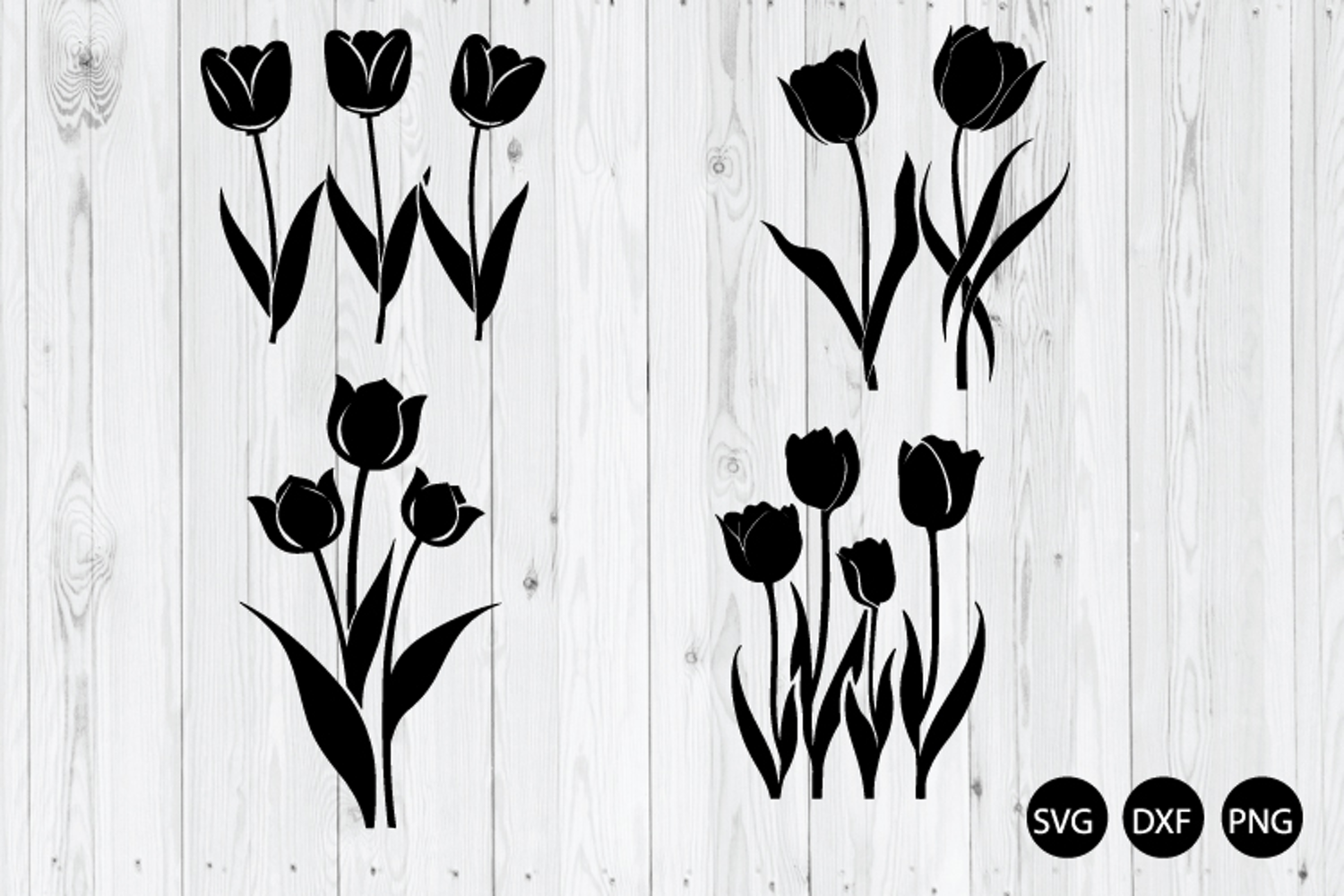 Tulips Flower SVG, Spring Flower SVG, Tulip Logo SVG, DXF, PNG Cut Files for Silhouette Cameo or Cricut