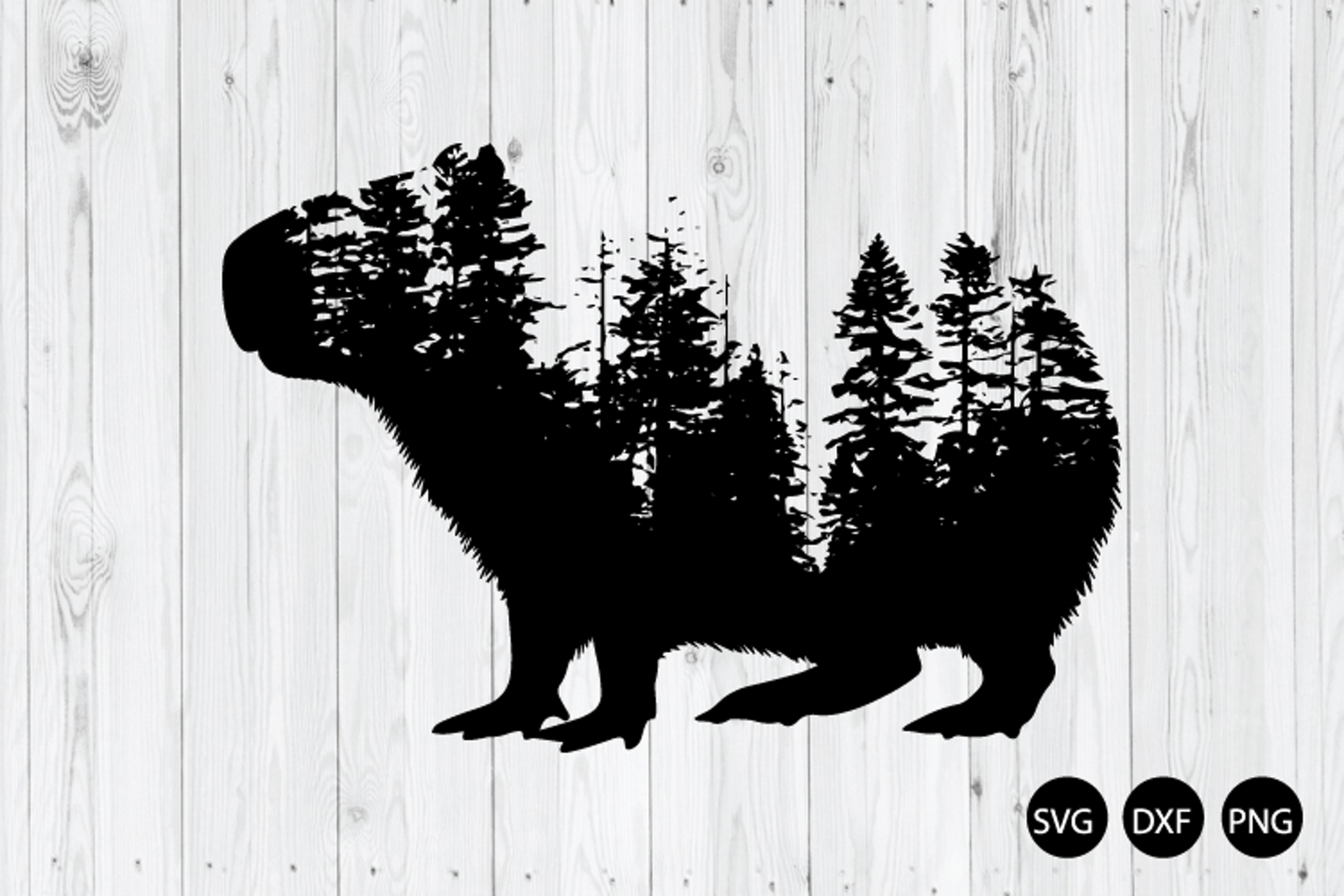 Capybara With Forest SVG, Capybara Double Exposure SVG, DXF, PNG Cut Files for Silhouette Cameo or Cricut