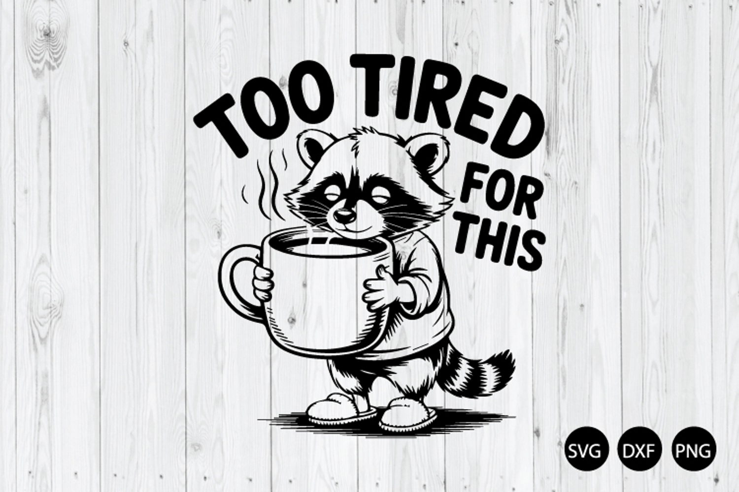 Too Tired For This SVG, Funny Raccoon SVG PNG, Coffee Lover SVG, DXF, PNG Cut Files for Silhouette Cameo or Cricut
