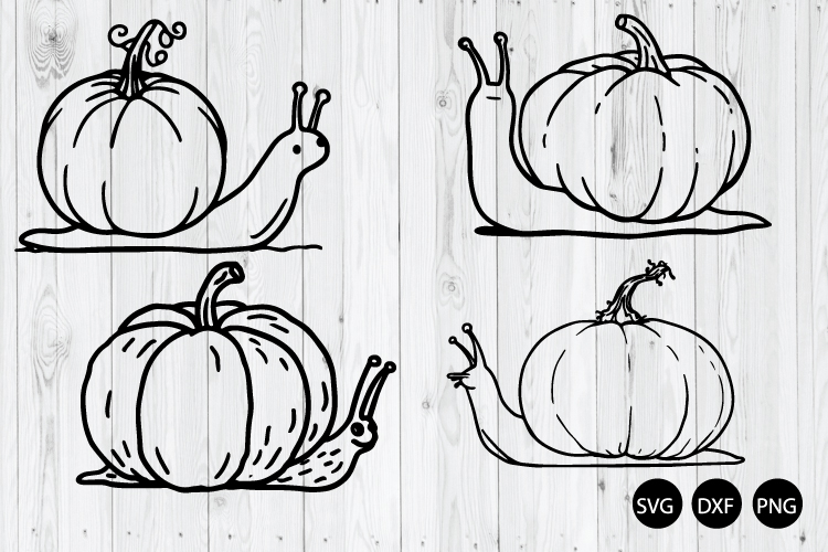 Cute Snails Pumpkin SVG, Doodle Snails SVG, Autumn SVG, DXF, PNG Cut Files for Silhouette Cameo or Cricut