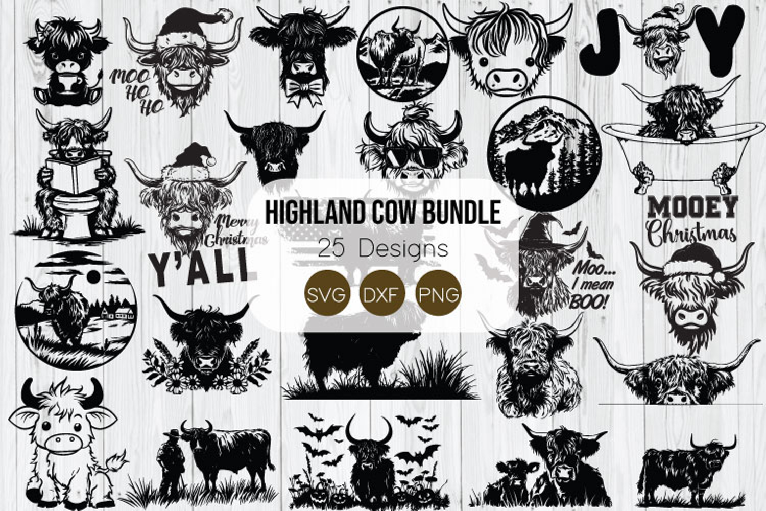 Highland Cow Bundle SVG, Highland Cow Cut File, Cow SVG, DXF, PNG Cut Files for Silhouette Cameo or Cricut