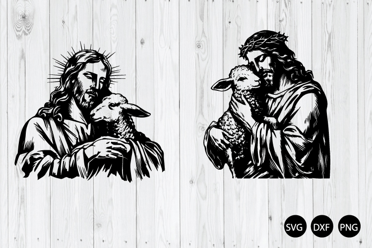 Jesus Yeshua Holding A Lamb SVG, Jesus With Lamb SVG, DXF, PNG Cut Files for Silhouette Cameo or Cricut