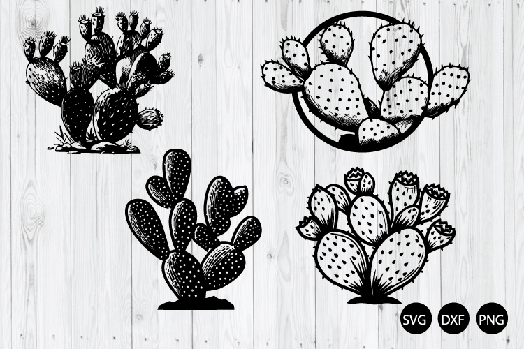 Prickly Pear Cactus SVG, Cactus SVG, Prickly Pear Silhouette SVG, DXF, PNG Cut Files for Silhouette Cameo or Cricut