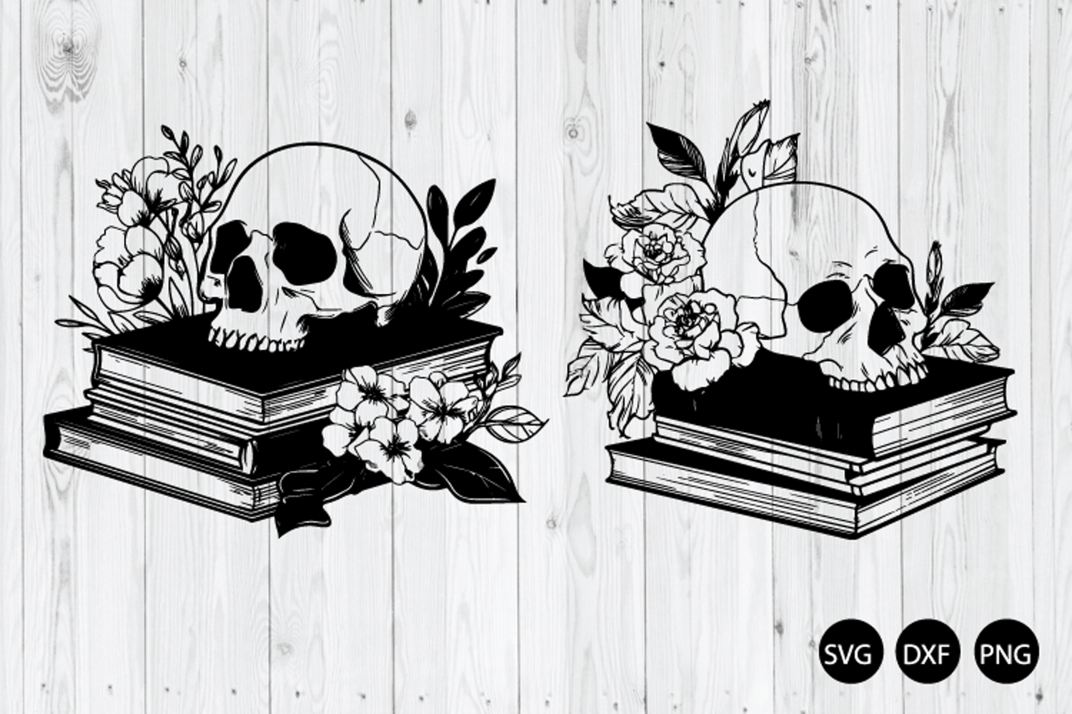 Similar Design Products to Skull On Stack Of Books With Flowers SVG, Skull Floral SVG