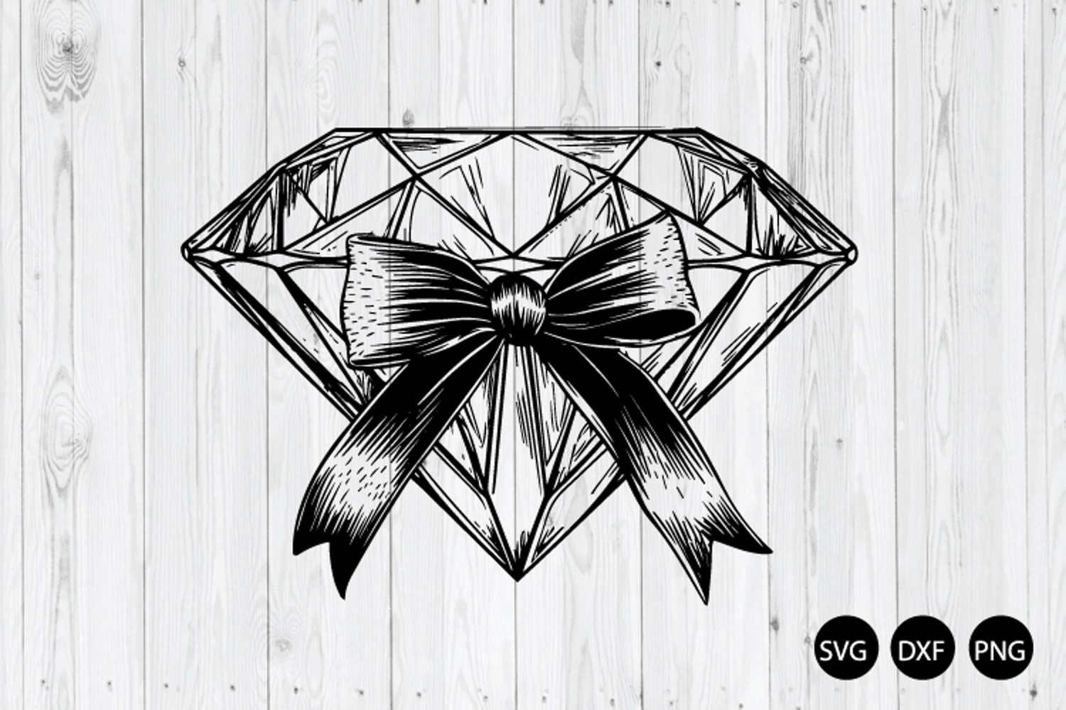Diamond With Coquette Bow SVG, Diamond SVG, Pearl Bow SVG example image 1