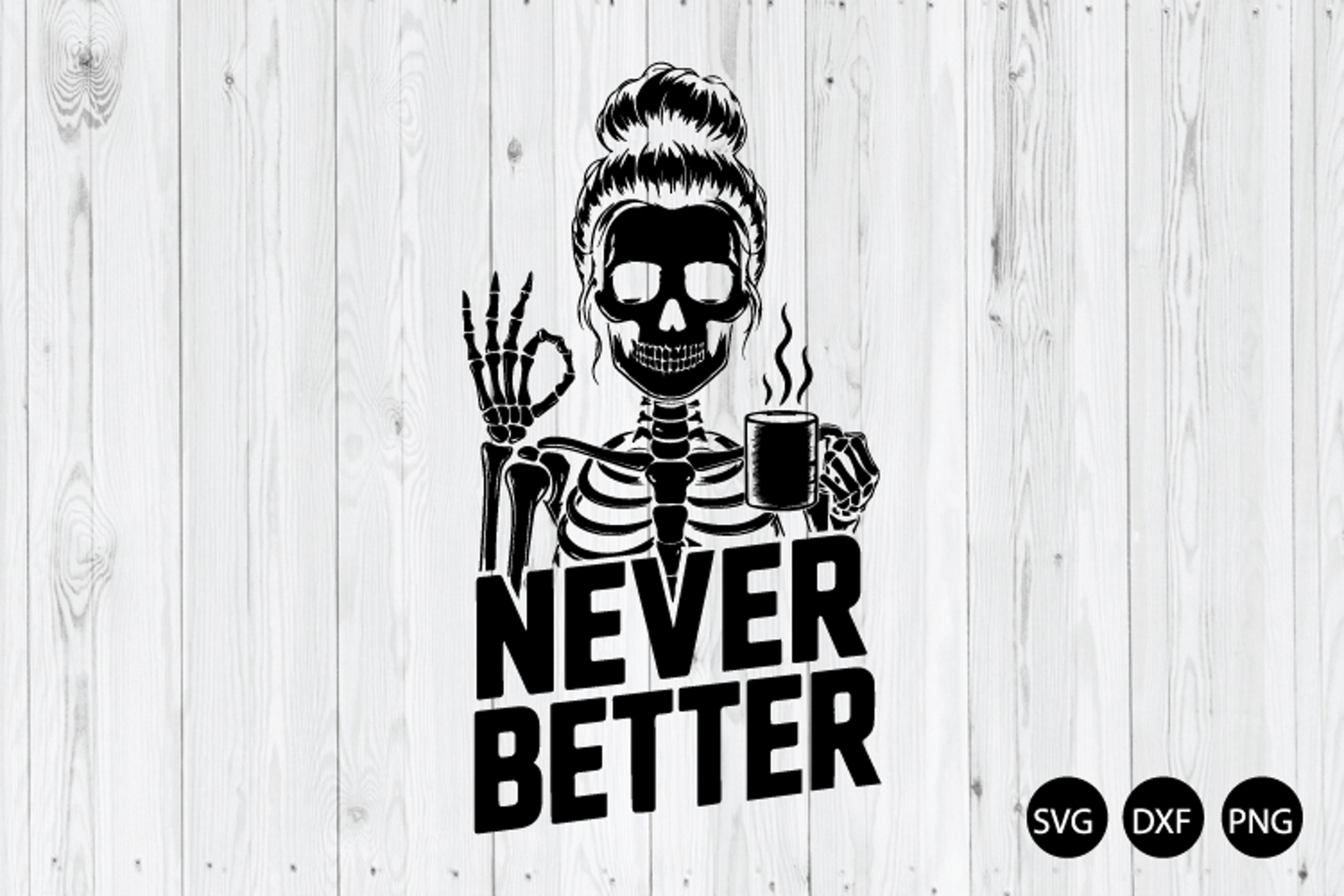 Skeleton Mom Coffee SVG, Never Better Halloween SVG, DXF, PNG Cut Files for Silhouette Cameo or Cricut