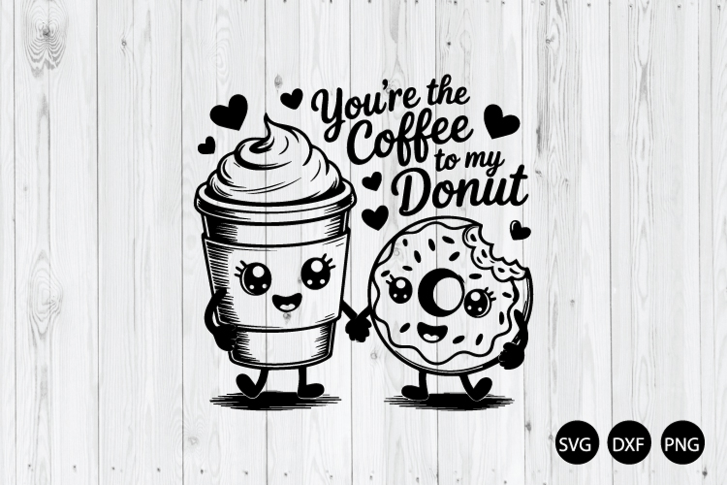 You're the Coffee to My Donut SVG, Foodie Valentine SVG, DXF, PNG Cut Files for Silhouette Cameo or Cricut