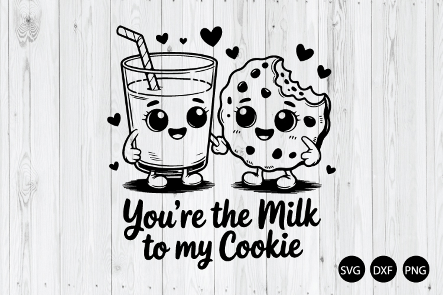 You're the Milk to My Cookie SVG, Foodie Valentine SVG, DXF, PNG Cut Files for Silhouette Cameo or Cricut