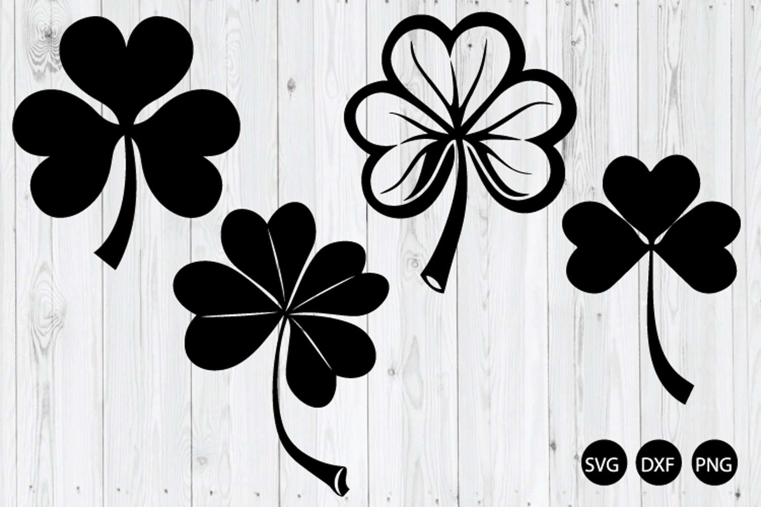 Shamrock SVG, Four-Leaf Clover SVG, St. Patrick's Day SVG, DXF, PNG Cut Files for Silhouette Cameo or Cricut