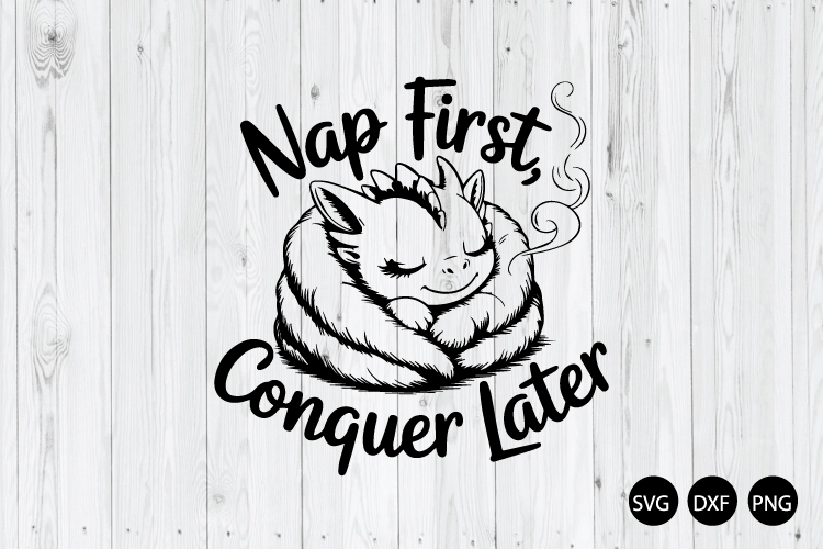Nap First Conquer Later SVG, Dragon SVG, Sleeping Dragon SVG, DXF, PNG Cut Files for Silhouette Cameo or Cricut