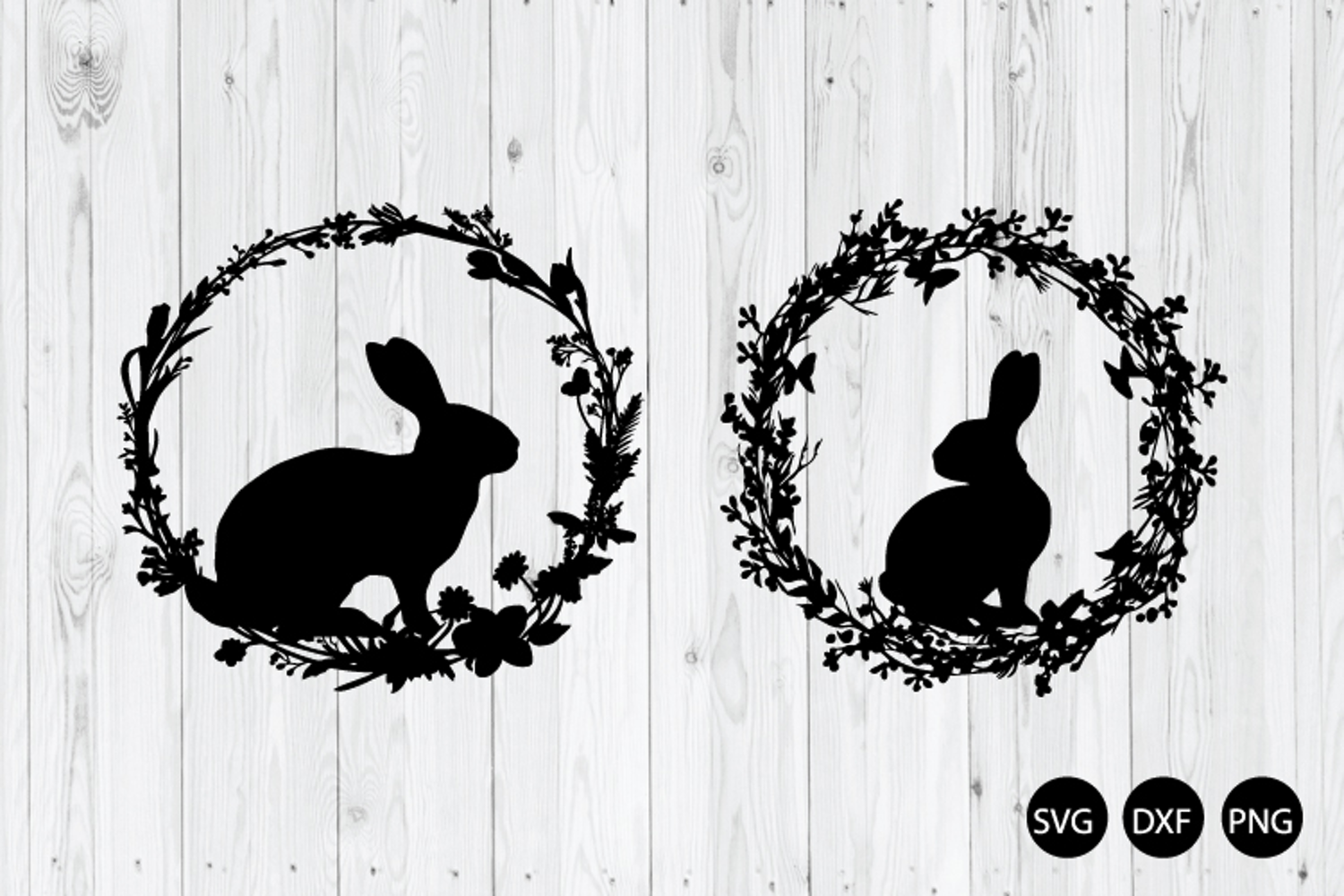Spring Rabbit Floral Wreath SVG, Easter Bunny SVG, DXF, PNG Cut Files for Silhouette Cameo or Cricut