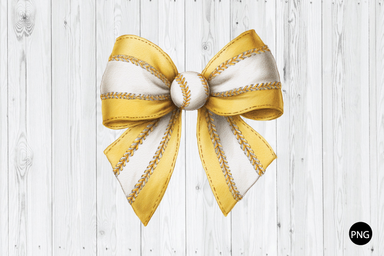 Yellow White Stitch Baseball Bow PNG, Softball PNG example image 1